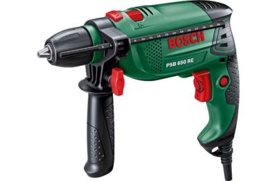 The Bosch PSB corded hammer drill lets you tackle all of your household DIY tasks with ease. So whether youre assembling flat pack furniture or putting up a shelf the hammer drilling action will ease through a range of materials including wood, concrete and plasterboard. This makes it an essential addition to your toolbox. This product comes with a FREE 2 year guarantee and a 5-day repair service. We will collect, repair and service your product and return it to you in perfect working order within 5 working days. (Collection excludes UK Highlands and Islands). 650 watts. Reverse function. 13mm keyed chuck. 13mm keyless chuck. 1 gear. Max torque 9Nm. 0 - 48000 blows per minute. Drilling capacity for wood 30mm, steel 12mm and masonry 14mm. Temperature overload function which shuts down unit automatically if it overheats. Soft grip, depth stop handle. Auxiliary handle. Cord length of 2.3m. Accessories included: 1 x auxiliary handle, 1 x depth stop and 1 x carry case. Carry case. Size H37.5, W34, D10.5cm. Drill weight 3.1kg. Manufacturers 2 year guarantee (excludes professional use).