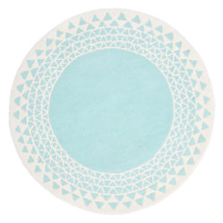 This rug by Scion features a giant stepping stone path of rounded, adjoined stones in block colours spreading across a natural ground.