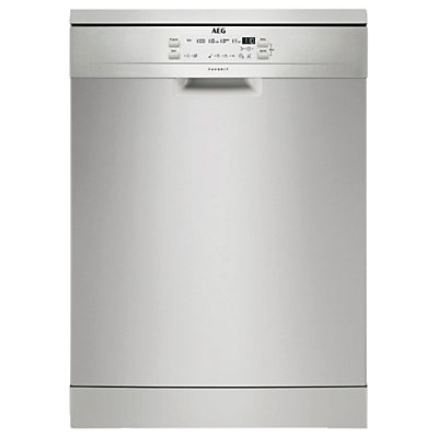 Boasting an outstanding A+++ energy rating and a generous capacity inside a slim, space-saving design, the FFB53600ZM Freestanding Dishwasher from AEG will leave your dishes spotless, without being a burden on your energy bills. Time Saver For added flexibility, the Time Saver function lets you half the cycle time to make sure your dishes will be ready when you need them. AirDry AEG's innovative AirDry technology allows your dishes to be dried naturally by automatically opening the door by 10cm during the drying cycle - saving energy and helping to cool your cutlery and crockery. Glass protection The upper basket is equipped with soft spikes that hold and protect fragile cups and glasses to prevent them falling onto each other and accidentally breaking. Timer delay Delay your cycle for up 24 hours according to your routine. Simply add the detergent, select the programme you require along with the time you'd like the cycle to begin, and let the machine do the rest of the work for you. Programmes: Auto 45°-70° Glass 45° 30-minute 60° Eco Intensive 70°