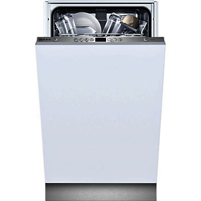 Ideal for smaller kitchens, Neff's S58T40X0GB slimline integrated dishwasher boasts an A+ for energy efficiency so you can have an economical home. Vario baskets Ideal for more efficient cleaning of bulky items - by folding the racks you can place bigger dishes and pans flat in the basket, allowing spray from all sides of your machine to clean more thoroughly. There are 2 foldable plate racks in bottom basket, 2 foldable cup shelves in top basket, knife rack in top basket and small variable cutlery basket in bottom basket. Quiet cleaning Running almost silently, this super quiet dishwasher is ideal for use during the night when energy costs are usually cheaper. This could save you money on bills and make your home even more environmentally friendly. Capacity Although a slimline model, this powerful machine provides enough room for 9 place settings with 4 programmes to choose from. Boasting 3 temperatures including Auto 45-65 °C, Economy 50 °C, Quick Wash 45 °C and Pre Rinse. NeffSparkle This automatic programme is designed specifically for mixed loads and treats glassware with extra care by using AquaVario, a sensitive low-pressure spray system. By using this handy function, all of your glassware will come out clean, dry and super sparkly without any breakages. Features and info Red InfoLight Push button top controls LED salt refill indicator, LED rinse-aid refill indicator Self-cleaning filter system with 3 piece corrugated filter Childproof Door lock Time delay (1-24 hours) with Acoustic end of cycle indicator, water fault indicator Acoustic end of cycle indicator Heat exchanger - Hygienic and efficient drying Efficient SilentDrive BLDC motor DuoPower Spray Arm DosageAssist detergent dispenser AquaSensor®, Load sensor - taking away the guess work for you Neff AquaStop® with guarantee for flood protection