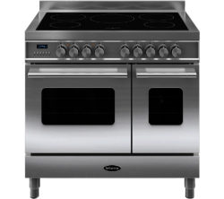 The Britannia Delphi 90 Twin Electric Induction Range Cooker in stainless steel delivers energy-efficient yet versatile cooking options with its two ovens and grills and a large induction hob....