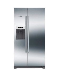 Bosch KAD62V40GB is an American-style, side-by-side fridge freezer in a sleek steel-look finish, with chrome inox metallic side panels. TouchControl 7-Segment electronics are sited on the exterior...