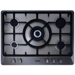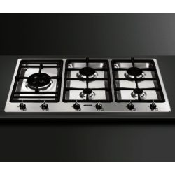 5 burner gas hob with ultra rapid burner gas safety valves automatic Ignition and 3 cast iron pan stands.