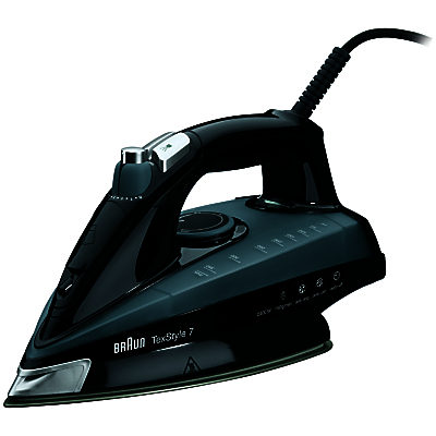 This premium iron from Braun offers powerful, responsive ironing at your fingertips for pristinely pressed clothes. The TS745A produces continuous steam output at 50g per minute. For more stubborn creases, the shot of steam is a superb 150g per minute. This iron is great for vertical steaming too, and is comfortable to hold thanks to the soft-grip handle. A precision ironing tip and water spray function enables you to iron any small creases or fiddly folds. A large filling inlet with lid enables fast and easy filling and emptying. For your convenience this iron has an extra long 2.5m cable, as well as a drip-stop system for leak protection. An innovative auto-off system provides maximum safety and energy saving. It shuts off automatically after 8 min in a vertical position or 30 seconds in a horizontal position. This steam iron gives you 2400 watt performance with full steam intensity out of three active areas including preconditioning steam. You attain a flawless finish quickly and comfortably.
