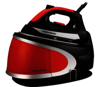 Make short work of that pile of laundry with this Morphy Richards Power Steam Elite 330001 Steam Generator Iron in red and black. More effective ironing The Morphy Richards Power Steam Elite provides a powerful, constant 160 g steam level that really lets you power through those creased garments. Glide over each item with a durable ceramic soleplate that gives you a pristine finish every time. You'll also be able to use the iron's 300 g Steam Boost function for those particularly stubborn or awkward creases, and it offers an impressive 6.5 bar pressure to smooth out even the toughest fabrics. Remove wrinkles, folds and crinkles with ease and have your clothes looking spic and span in less time. Holds more water Iron for longer thanks to an extra-large 2-litre water tank, which lets you focus on completing your chores rather than having to constantly stop and refill. The iron's control panel even lights up when it's time to add more water - all you need do it detach it, fill it with water and then carry on from where you were. You won't even need to wait for it to cool down, making ironing days smoother. Easy to use and easy to clean With its illuminated buttons for Power On, Descale, Water Refill and steam adjustment, the Morphy Richards Power Steam Elite 330001 Steam Generator Iron couldn't be simpler to operate. Instantly check which of its three variable steam settings you're using and select the precise steam level you need to make each kind of fabric look its best - from delicate blouses and dresses to thick jeans and workpants. The iron offers a flushable boiler system to counteract limescale accumulation, sparing you having to buy anti-scale filters. When it's time to descale, the control panel lets you know, making iron maintenance quick and simple. This red and black Morphy Richards Power Steam Elite 330001 Steam Generator Iron makes an invaluable ally for any laundry situation.