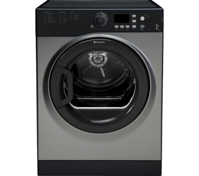 Dry up to 6 kg of washing with this Hotpoint FTVFG65BGG Vented Tumble Dryer , finished in graphite. Cares for your clothes The Hotpoint FTVFG65BGG offers a selection of specially-designed cycles that allow you to dry different fabrics with the right degree of care, keeping them looking and feeling great. Use the Anti-Allergy programme to get rid of major allergens like fungi, dust mites, bacteria and pollen - this uses a higher temperature and is great for those with sensitive skin. Easy-to-set dryer An automatic, five-level sensor dryer makes things more convenient, allowing you to leave the FTVFG65BGG Tumble Dryer to run while you get on with other things. Timed tumble drying lets you get the exact results you want. There's a delay timer function, which allows you to set the dryer to start at a time that fits in with your schedule, or at night when energy rates are lower. Check how things are progressing on the clear digital display. Finish off your laundry properly with the Hotpoint FTVFG65BGG Vented Tumble Dryer .