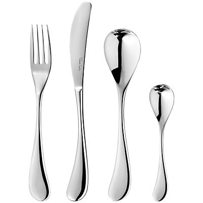 This 24-piece gift boxed cutlery set will make any dining occasion one to remember. Molton cutlery's vertical appearance belies its comfort and balance in use. The fluidly curved handles seem to wrap around plate, enhancing the overall look on the dining table. Spoons and forks are made using the highest quality 18/10 stainless steel. Knife blades are made from specially hardened stainless steel to provide the finest possible cutting edge. All Molton cutlery is available with a mirror finish, has a 25 year guarantee and is dishwasher safe.