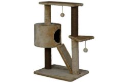 This beige two tier scratching post is ideal for your cat. Featuring a hanging toy, scratching posts and plush areas to move and lay down, this is bound to keep your cat entertained and offers plenty...